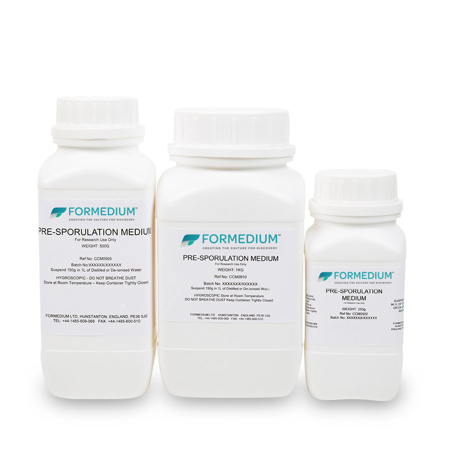 Pre-Sporulation Medium is used for strains that do not sporulate well when grown on sporulation medium directly. Cells are grown 1-2 days on pre-sporalation medium before transferring them to sporulation medium.