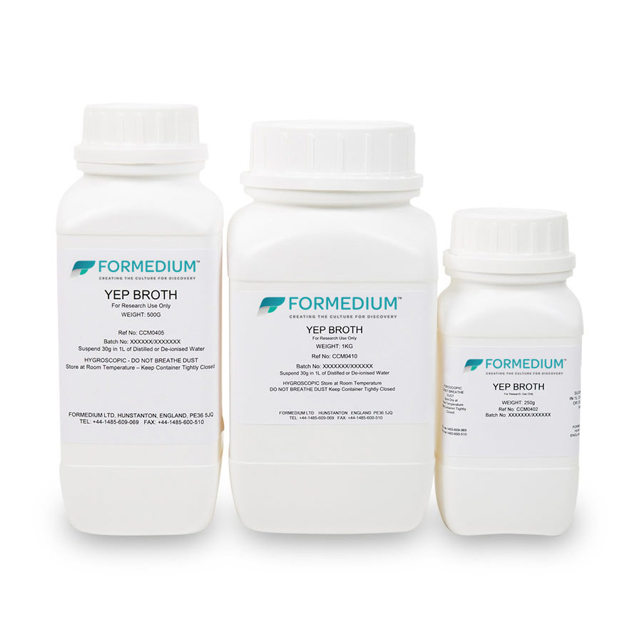 YEP Medium is based upon YPD but is without dextrose and can be used as a base for making YPD media with an alternate carbon source.